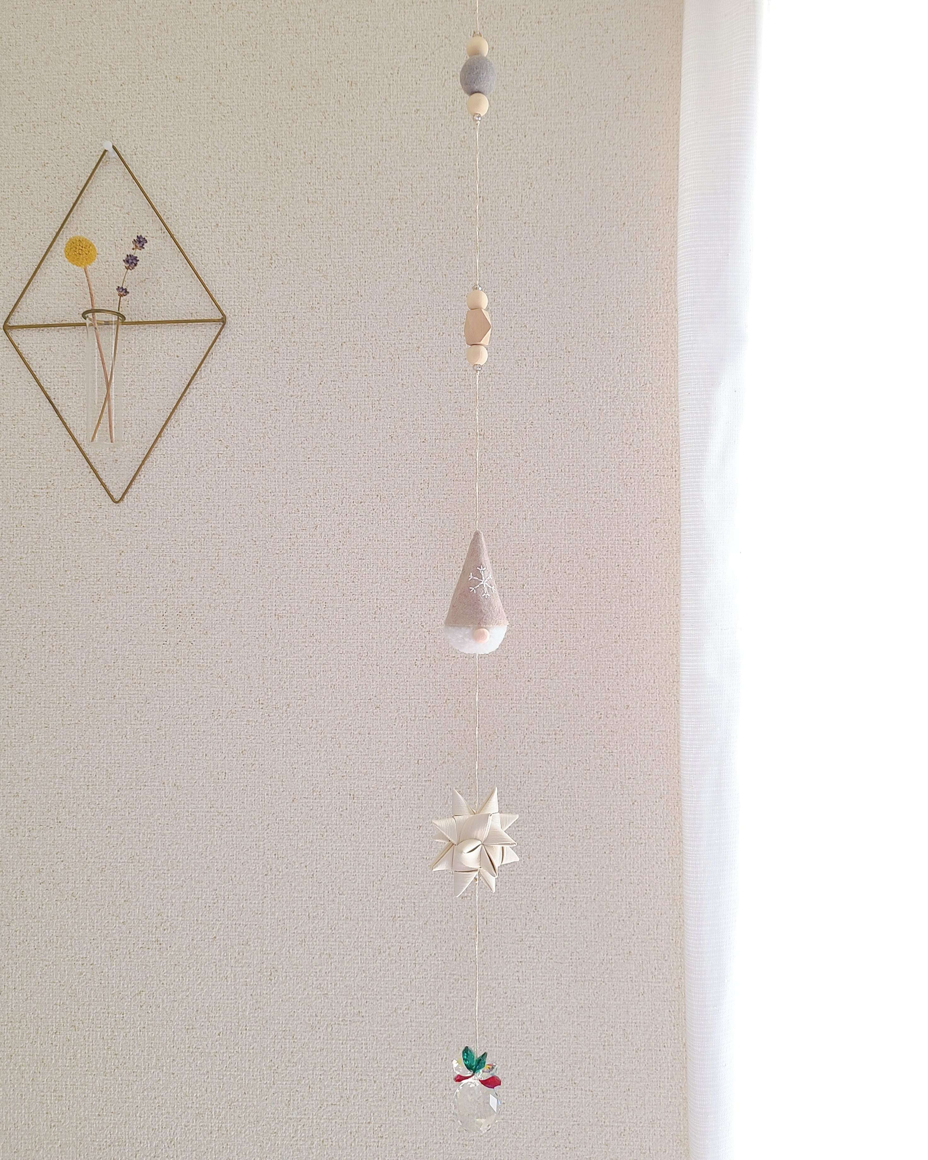 サンタさんのオーナメントとウールボール、クリスマスカラーのビーズを組み合わせた期間限定のサンキャッチャーです!